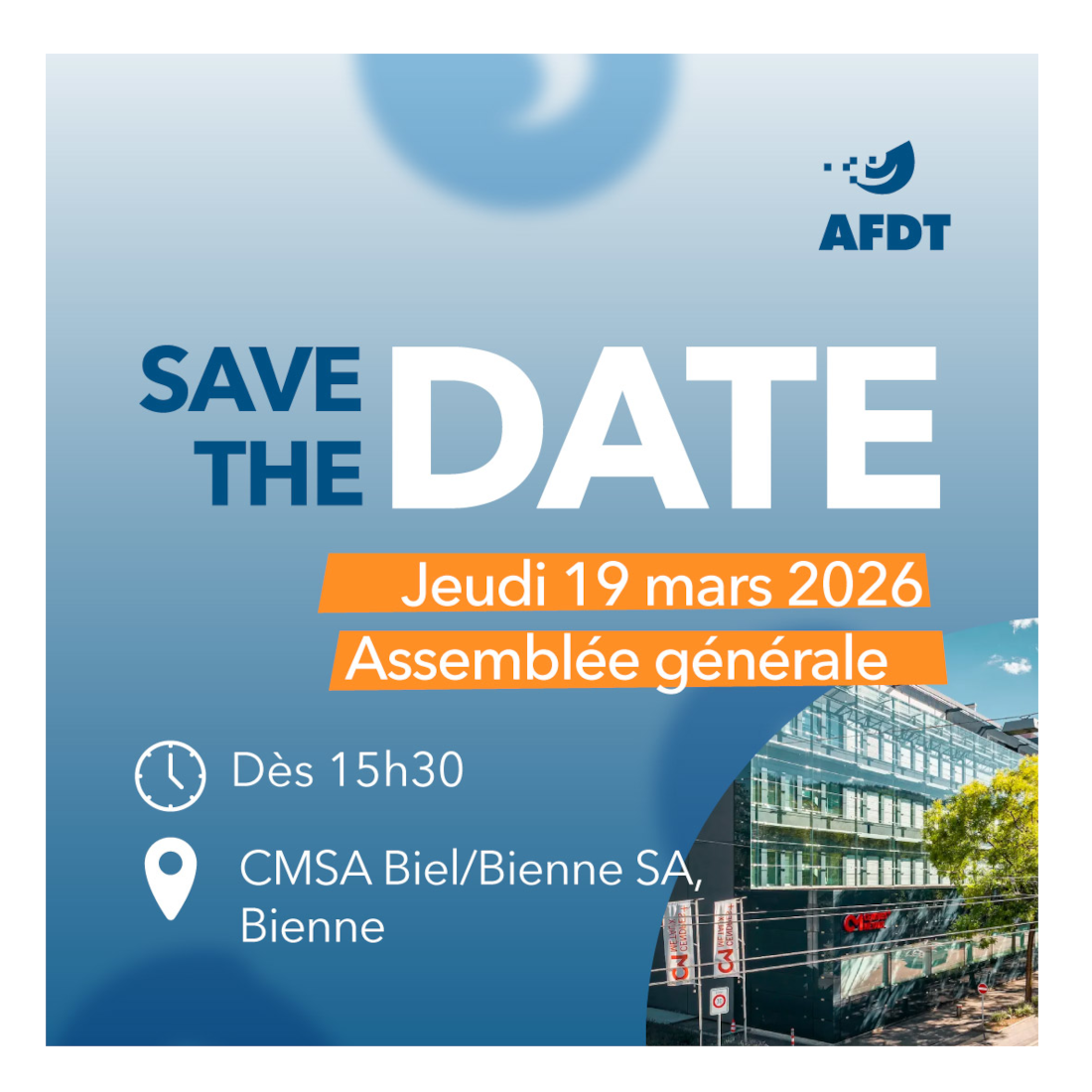 L’Assemblée générale de l’AFDT aura lieu le 19 mars prochain à Cendres+Metaux SA et réunira nos membres et partenaires pour un temps d’échanges, d’informations et de convivialité.