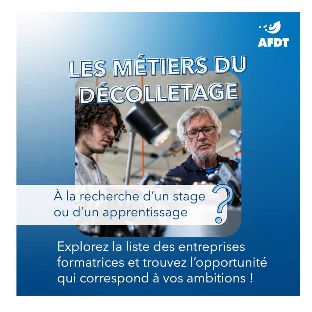 17 Fév News Plus de 40 entreprises membres de l’AFDT forment la relève du décolletage ! 17 février 2025 Posted by Joelle Schneiter Votre enfant s’intéresse à un apprentissage dans ce domaine passionnant ? Découvrez les opportunités et métiers du décolletage dans not... Continue reading