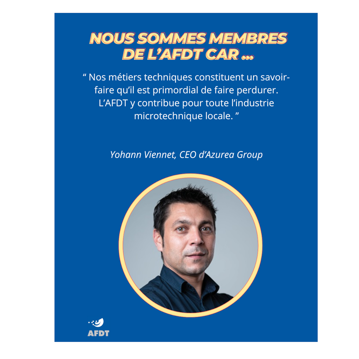 Nous sommes ravis de partager le témoignage de Yohann Viennet, CEO d’Azurea Group. C’est un honneur de voir nos membres exprimer leur soutien et leur enthousiasme pour l’AFDT.