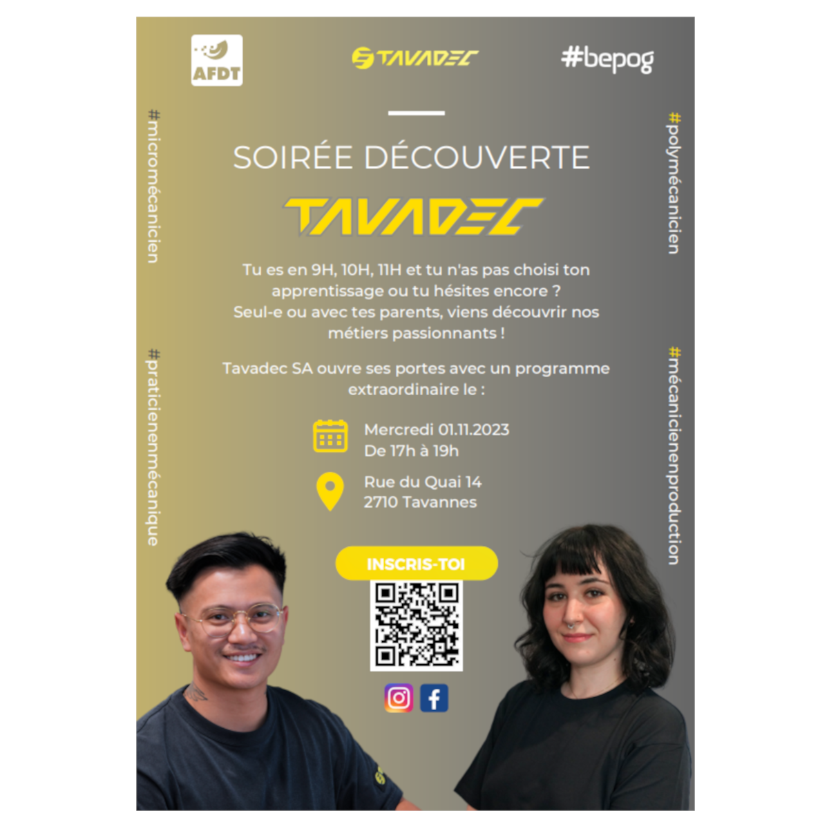 Le 1er novembre prochain Tavadec SA à Tavannes invite les jeunes de 9H, 10H ou 11H à s’immerger dans son activité !