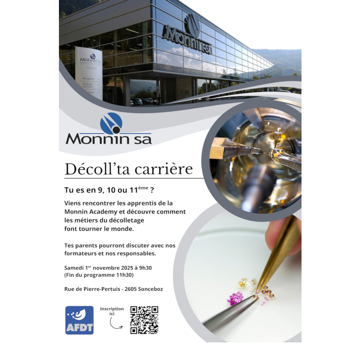 📅 Samedi 1er novembre 2025, de 9h30 à 11h30, Monnin SA ouvre ses portes aux élèves de la 9H à la 11H et à leurs parents !